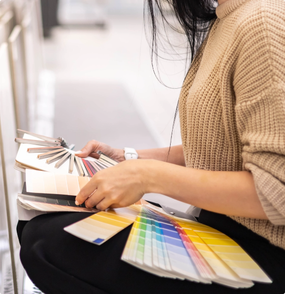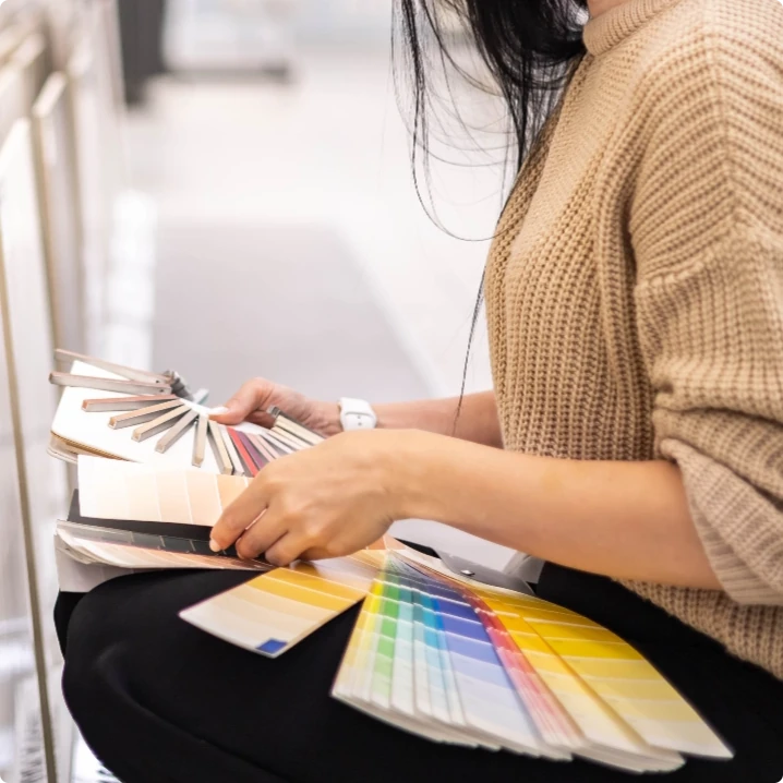Vi erbjuder ett brett sortiment av färger och mönster på både golv och väggar – från stilrena enfärgade ytor till skiffer, trä- och stenimitationer.